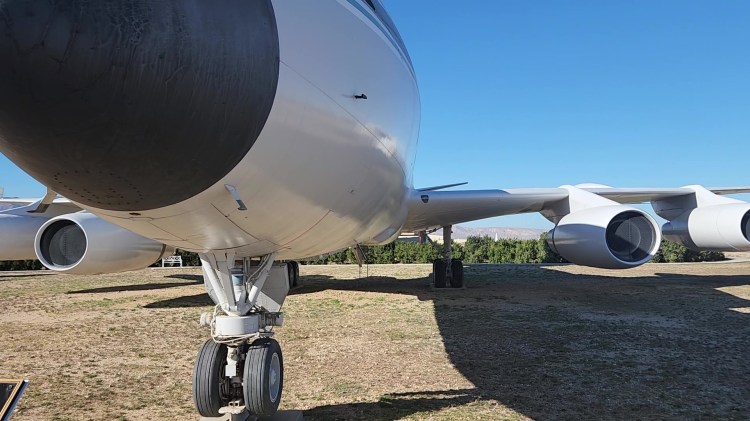 Oddly enough, while the McDonnell Douglas F-4J Phantom II and the Saab T-35 Draken are displayed with their engines removed, the Coronado still has rotating parts in those engine nacelles. We were surprised to hear the Mojave wind that pushed its way around the plywood intake cover on the number three engine, gently spinning the turbine fan with a lonesome tick-tick-tick.